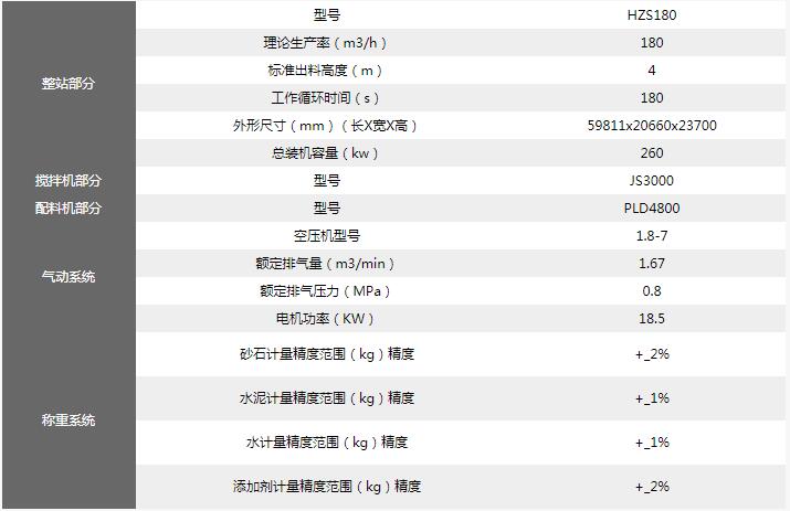 HZS180混凝土攪拌站型號參數(shù)