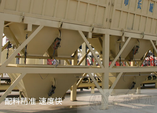 儲料倉容積大,減少后期裝載機上料次數(shù)。儲料倉設有篩網(wǎng),防止大粒徑骨料進入攪拌主機,確保運行安全可靠。