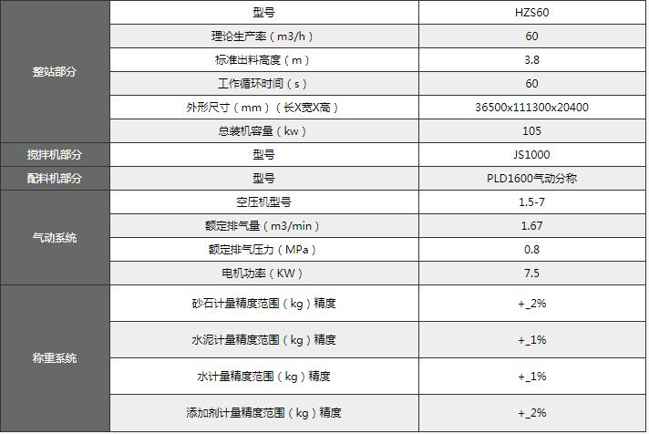 60混凝土攪拌站參數(shù)如下: