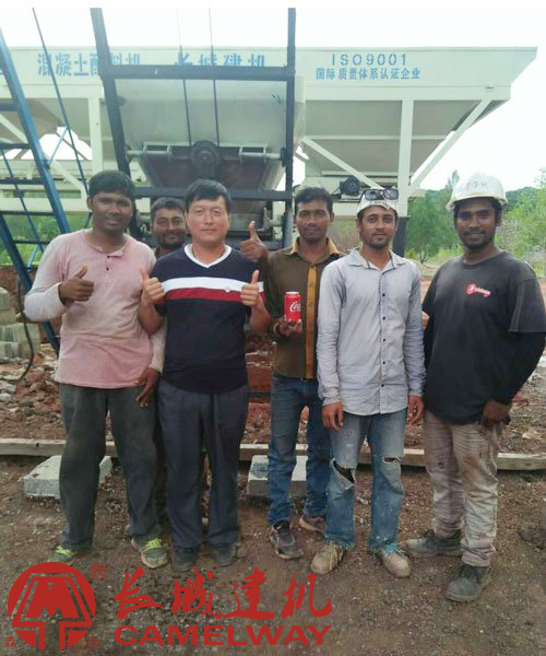 hzs25混凝土攪拌站帕勞項目安裝調(diào)試 客戶為長城建機(jī)豎起大拇指